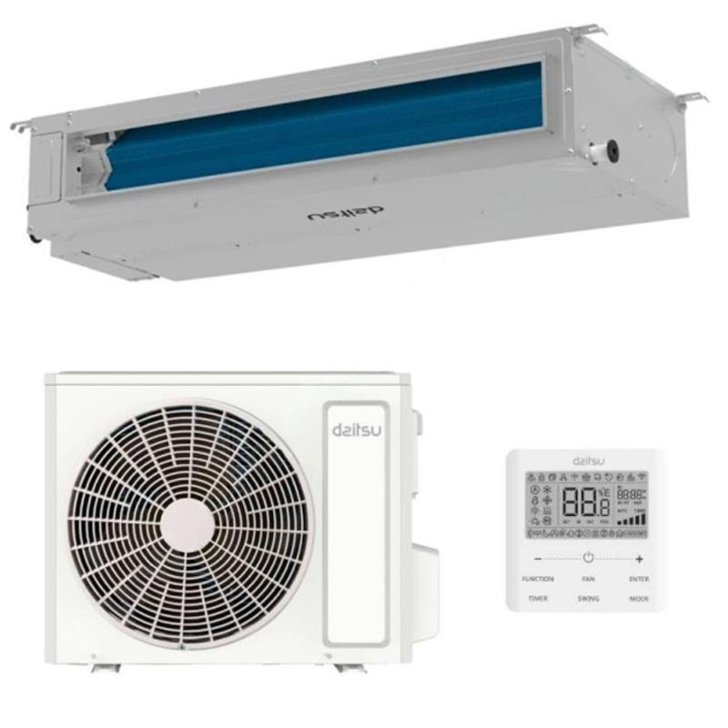 Il climatizzatore Daitsu Split Atlas II canalizzabile è un sistema di climatizzazione versatile, progettato per l’installazione nascosta in controsoffitti o pareti. Dotato di controllo remoto tramite Wi-Fi, offre gestione a distanza e alta efficienza energetica, garantendo comfort e distribuzione uniforme dell’aria in ampi spazi. Ideale per ambienti residenziali o commerciali, questo modello combina potenza e silenziosità, mantenendo temperature ottimali tutto l’anno. WI-FI Incluso.
