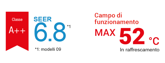 Anche se installato in aree con temperature esterne elevate (max. 52°C*), riesce a rinfrescare in maniera confortevole gli ambienti.