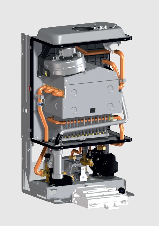 Scambiatore primario lamellare in rame con elevata superficie di scambio e doppia circolazione