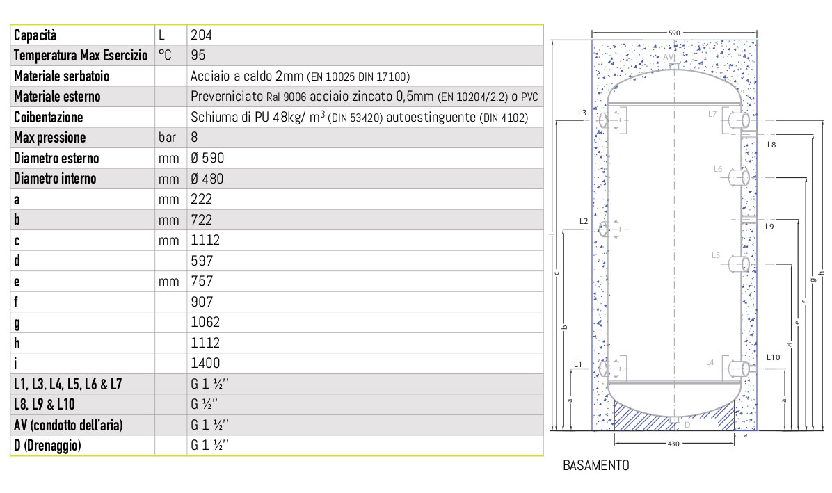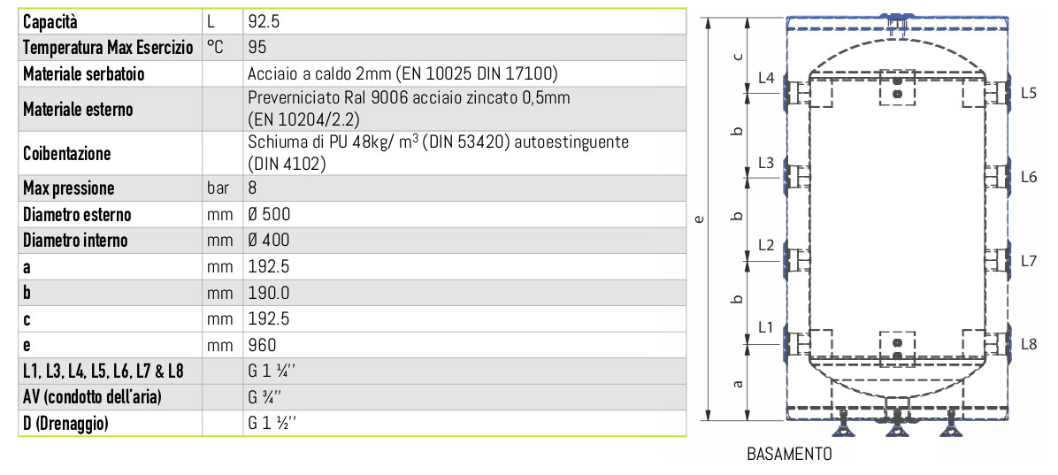 SmartSol BAC 0 accumuli inerziali caldo/freddo interno/esterno pensili e basamento 40/500lt metal