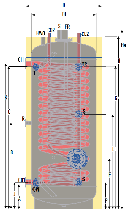 SmartSol bollitori vetrificati HPS-2 doppio scambiatore specifico per pompe di calore Dark grey da 200 a 1000 LtT