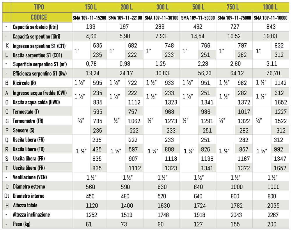 SMA 109-11-10000 1000 Lt, SMA 109-11-15200 150 Lt, SMA 109-11-22100 200 Lt, SMA 109-11-30100 300 Lt, SMA 109-11-50000 500 Lt, SMA 109-11-75000 750 Lt