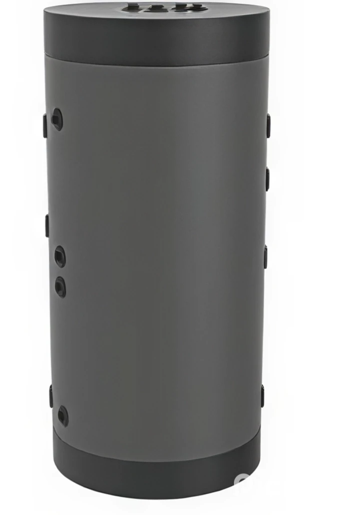 Termoaccumulatore tripla energia per acqua di riscaldamento con scambiatore corrugato in acciaio inox 316L per A.C.S. e 2 scambiatori fissi.
