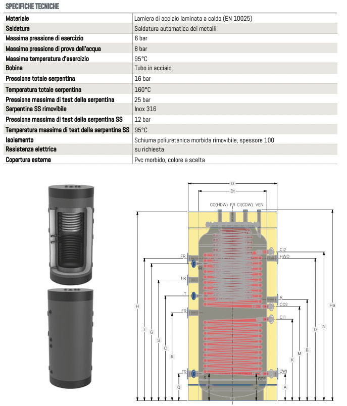 SmartSol termoaccumulatore tripla energia BAC 2 CI PVC 500/1500 Lt