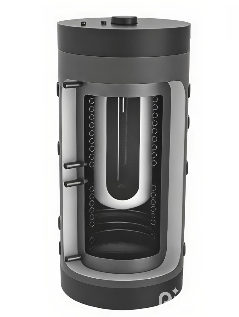 Termoaccumulatore Tank in Tank per acqua di riscaldamento con accumulo A.C.S. e 2 scambiatori fissi.