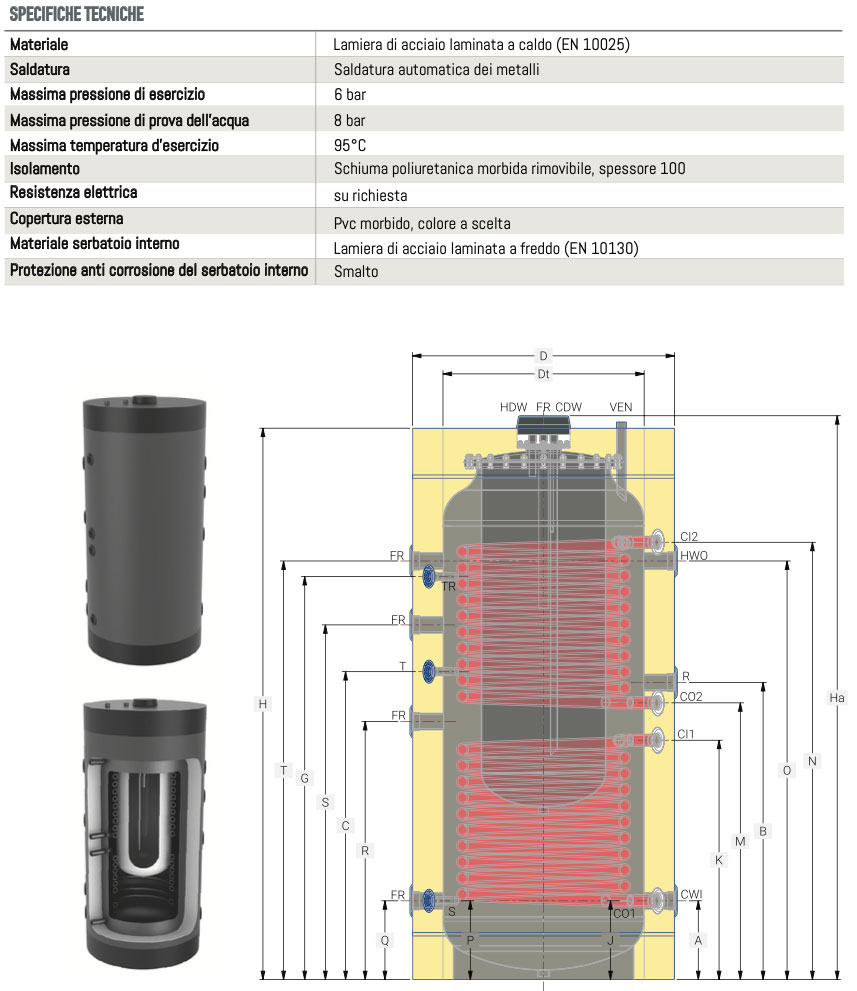 SmartSol bollitore BLE-2 doppio scambiatore estraibile grandi capacitร 1500/9000 Lt